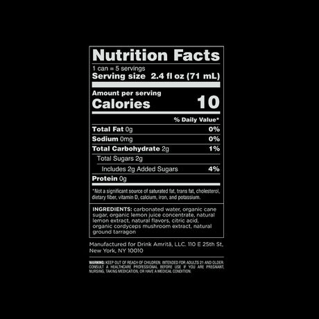 Carbonated water, Organic cane sugar, Organic blackberry juice concentrate, Natural flavors, Citric acid, Organic chaga mushroom extract, Organic ground cayenne